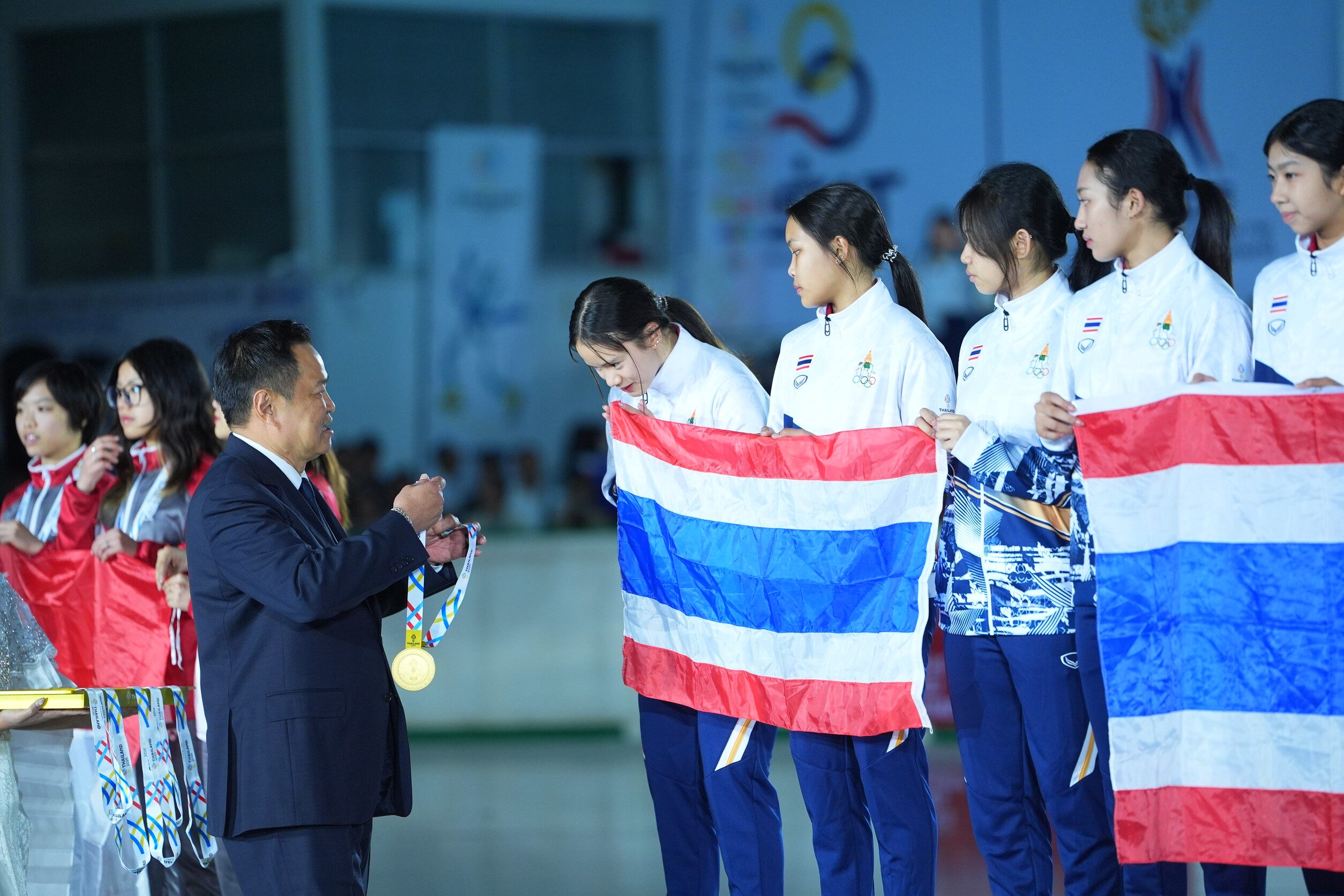 หลังการมอบเหรียญรางวัล นายอนุทิน ชาญวีรกูล ได้ตอบคำถามสื่อมวลชนสายกีฬาเกี่ยวกับภาพรวมซีเกมส์ ว่า การแข่งขันก็เข้มข้น นักกีฬาทุกคนก็ปล่อยฝีมือมาอย่างเต็มที่ ซึ่งประเทศไทยโชคดีมีนักกีฬาที่มีวินัยสูง มีความเข้มแข็ง ทำให้เราได้เจ้าเหรียญทองของกีฬาซีเกมส์ ก็ขอแสดงความชื่นชมทุกฝ่ายที่มีส่วนเกี่ยวข้องทั้งกระทรวงการท่องเที่ยวและกีฬา การกีฬาแห่งประเทศไทย บุคคลากรทุกคนที่ให้ความสนับสนุน สมาคมต่างๆ ต้องขอชื่นชม เต็ม 10 ให้ 100 คะแนนเลย
